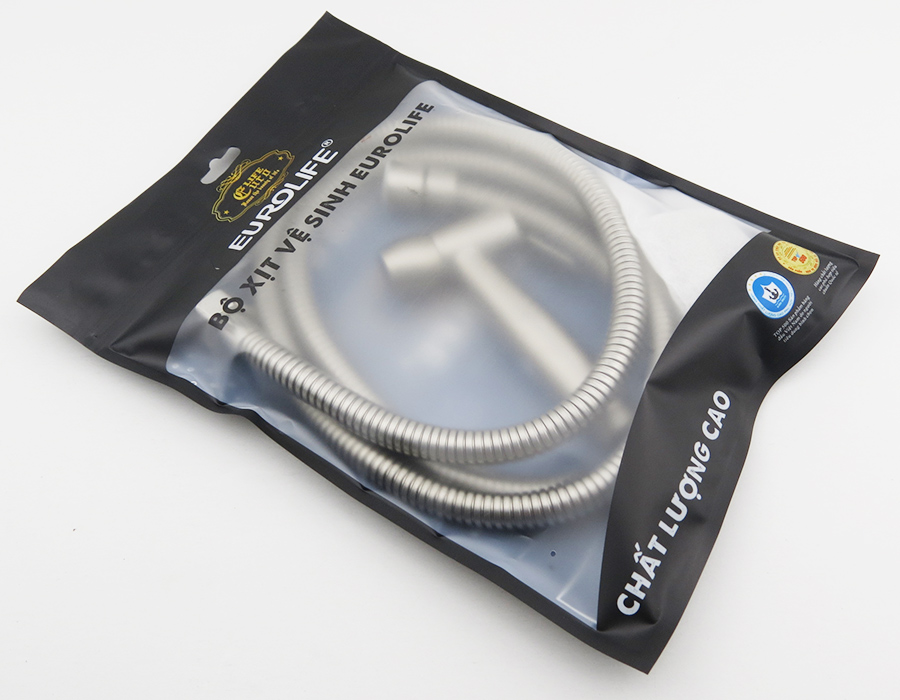 Bộ vòi xịt vệ sinh nhựa ABS mạ màu đen, màu vàng tăng áp Eurolife EL-X13 - Thương hiệu Eurolife Việt Nam - Chất liệu : Nhựa ABS mạ tĩnh điện màu đen, màu vàng sang trọng - Pít tông tăng áp, tạo áp suất cao - Khóa thông minh, rảnh tay tiện lợi - Dây Inox 120cm, ruột được bện bố dù, chịu áp suất cao, bền bỉ cùng năm tháng - Bảo hành : 2 năm ========================================= CHI TIẾT SẢN PHẨM ======================================== TAY XỊT ========================= * Chất liệu: Tay xịt được làm bằng nhựa ABS thân thiện với sức khỏe và môi trường, mạ màu đen. Thân vòi được thiết kế vuông, thuận tiện với mọi tư thế cầm khi sử dụng ! Tay nhấn được thiết kế chắc chắn và khỏe khoắn, tiện dụng. TAY NHẤN THÔNG MINH Tay nhấn của vòi xịt được thiết kế với chức năng rảnh tay, không cần nhấn giữ khi sử dụng. Chỉ cần gạt ngang, bạn có thể rảnh tay làm những công việc khác. MẶT PHUN MẠNH MẼ