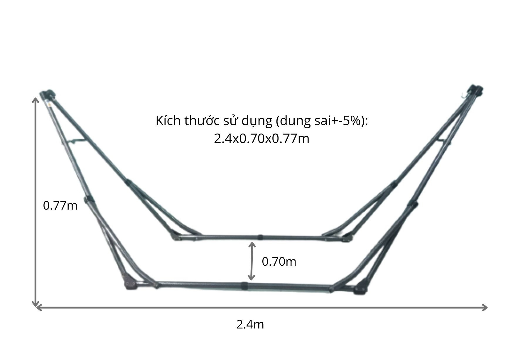 Khung võng xếp bằng ống thép: sơn tĩnh điện, đường kính 27.0mm, chiều dày 0.9mm, 4 thanh chống cong:điều chỉnh độ dài & độ cao của khung võng. Kích thước sử dụng: trung bình 210