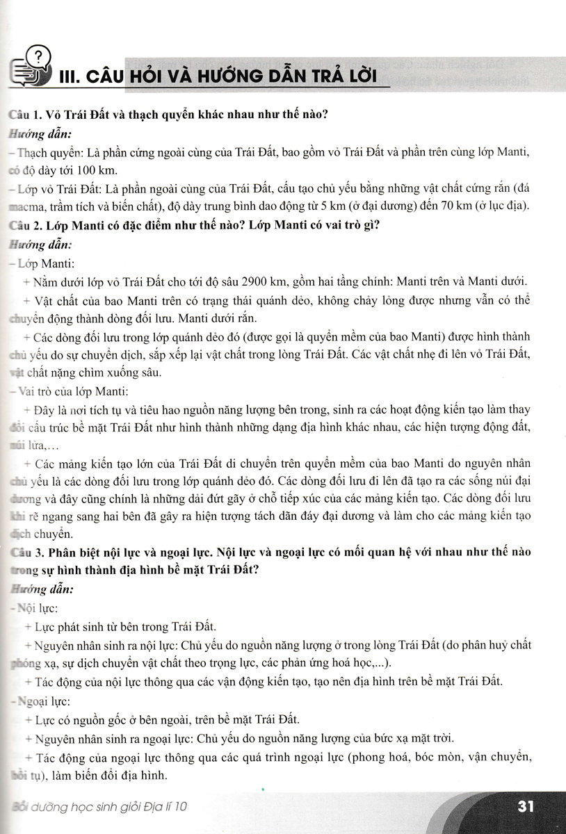 Combo Học Tốt Địa Lí Lớp 10 (Dùng Chung Cho Các Bộ SGK Theo Chương Trình GDPT Mới) (Bộ 3 Cuốn)   1. Câu Hỏi Và Bài Tập Bồi Dưỡng Học Sinh Giỏi Địa Lí Lớp