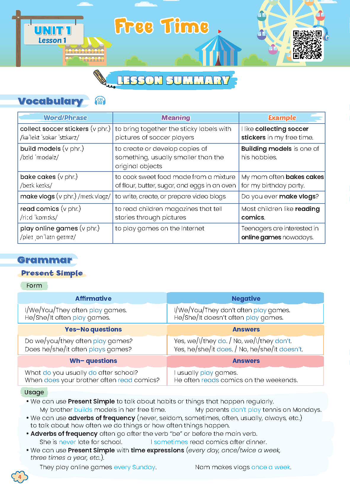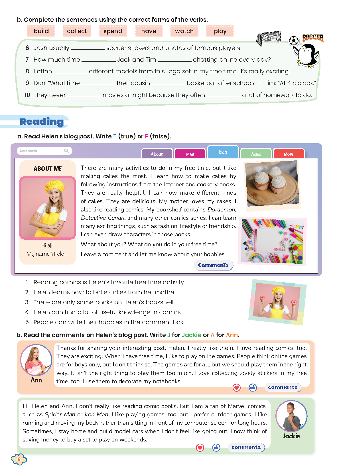GIẢI BÀI TẬP BỔ TRỢ TIẾNG ANH 7 UNIT 1 FREE TIME LESSON 1