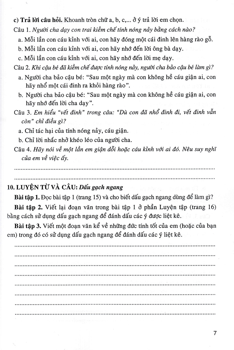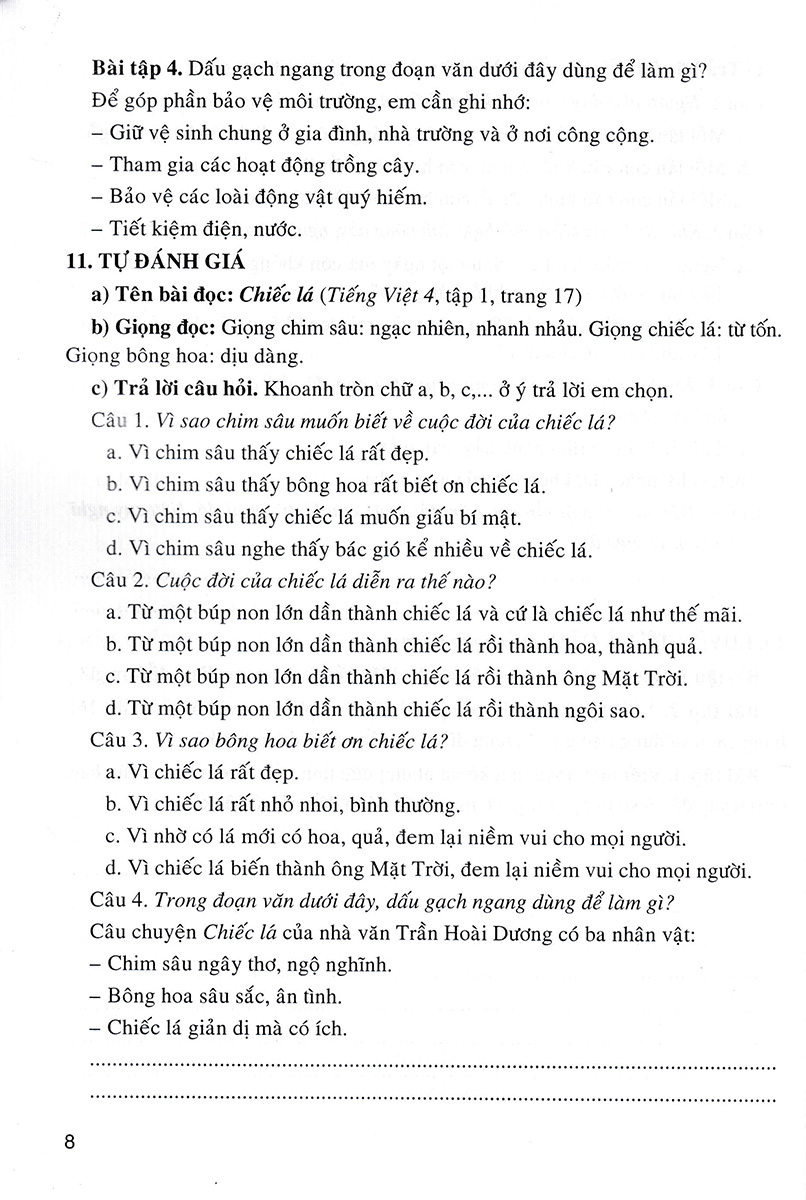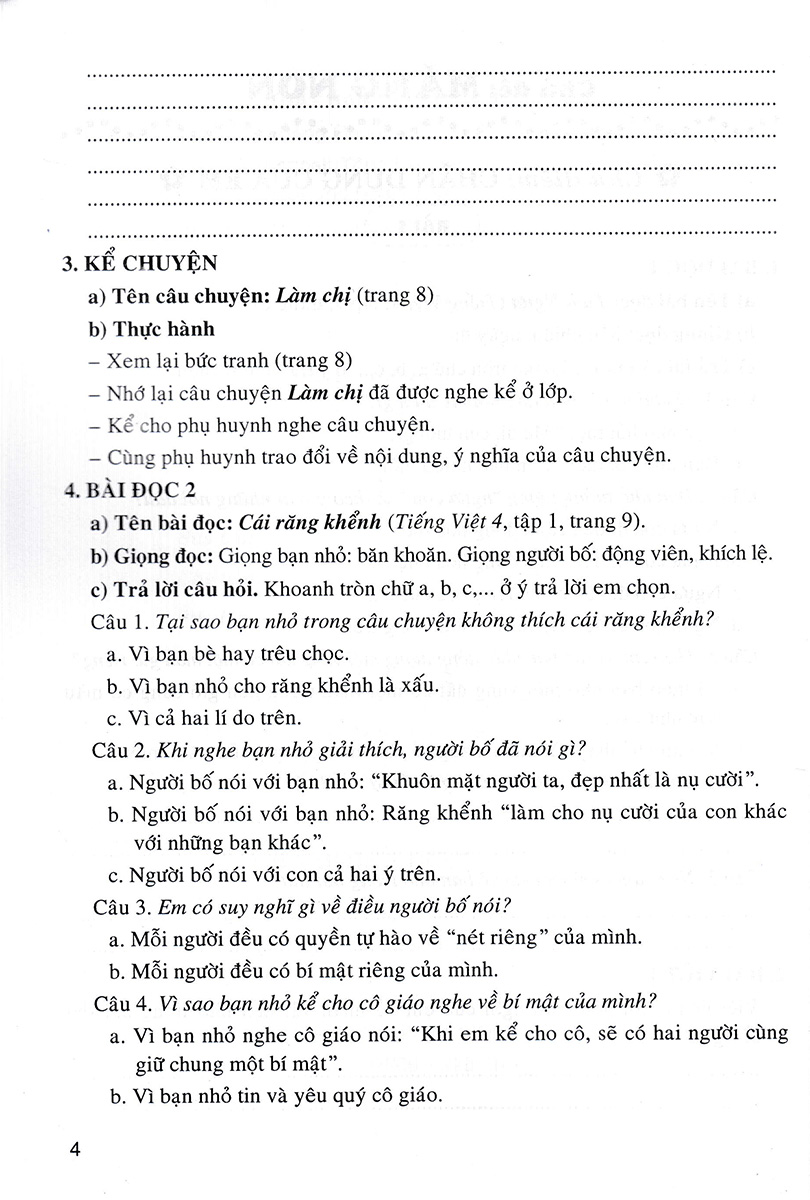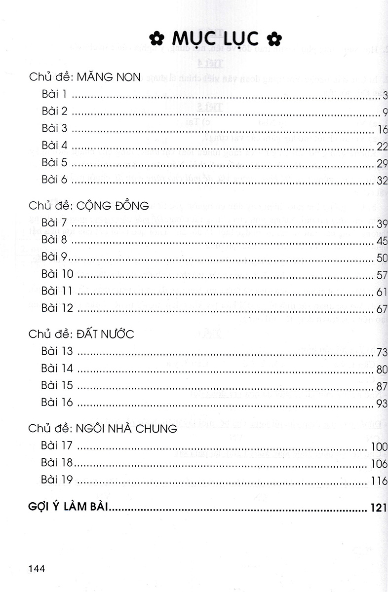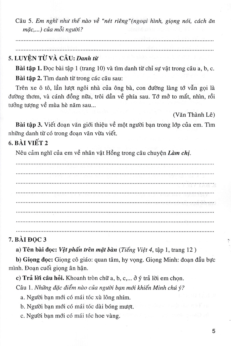 - Bồi dưỡng tình yêu tiếng Việt, hình thành thói quen giữ gìn sự trong sáng và giàu đẹp của Tiếng Việt, góp phần hình thành nhân cách con người Việt Nam hiện đại. Các bài tập giúp em ôn luyện Gợi ý làm bài cho mỗi tuần Ngoài ra, cuốn sách còn cung cấp thêm một số dàn bài, những bài văn mẫu và những câu chuyện kể trong và ngoài nước nhằm cung cấp thêm nguồn tư liệu để các em tham khảo và vận dụng vào các bài học