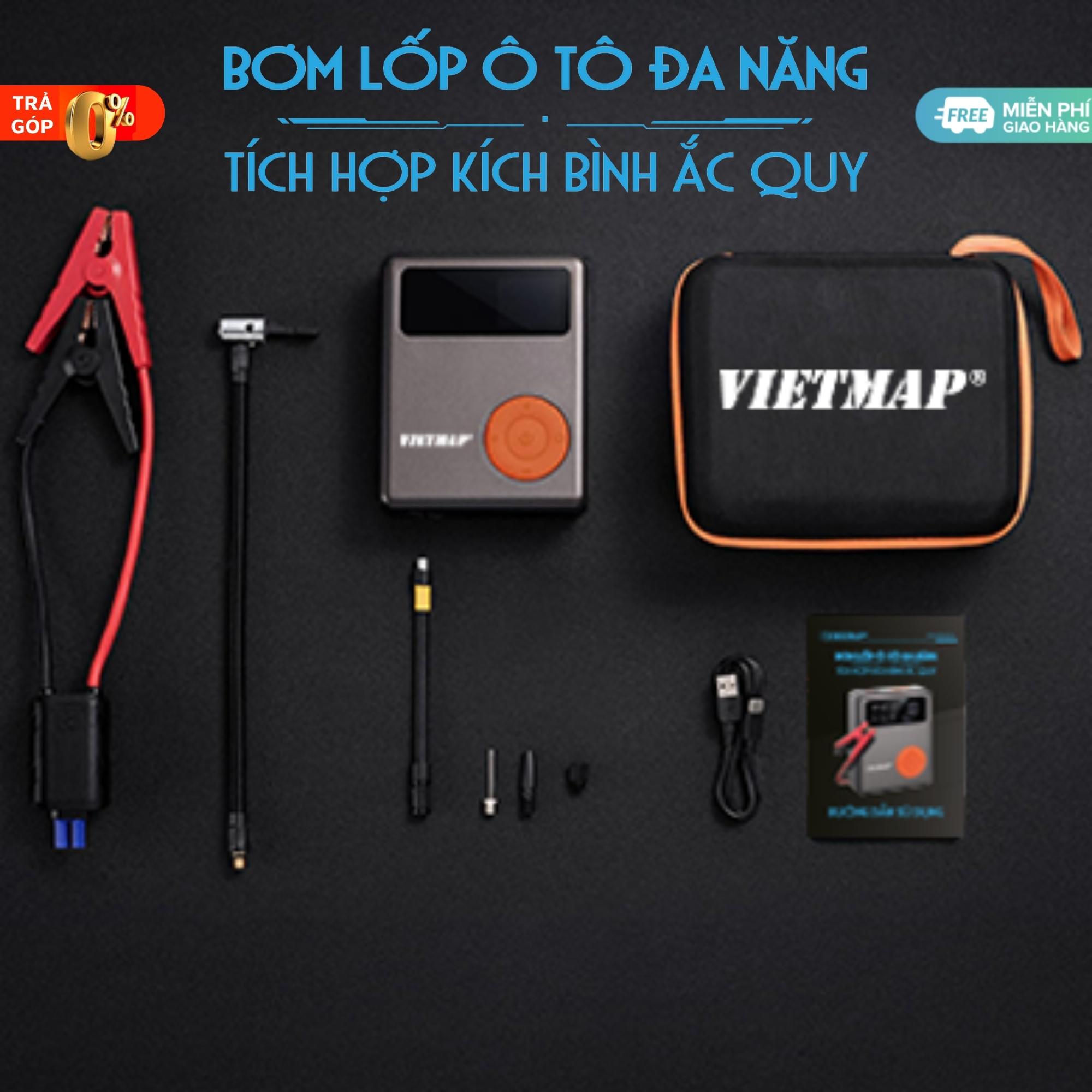 Bơm Lốp Đa Năng Kết Hợp Kích Bình Ắc Quy VIETMAP DK-MF139 là giải pháp tích hợp 4 trong 1 Sẵn Sàng Cho Mọi Tình Huống Khẩn Cấp: Bơm lốp ô tô - Kích bình ắc quy - Sạc dự phòng - Đèn phát sáng nhằm dự phòng cho các tình huống sự cố bất ngờ khi tham gia giao thông.