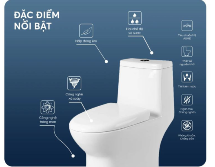 Bồn cầu liền khối cao cấp công nghệ men nano tuyết chống bám dính và kháng khuẩn