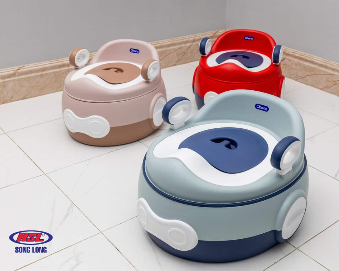 Thiết kế 3 trong 1 đa năng: + Bô vệ sinh độc lập: Sử dụng cho bé tập đi vệ sinh. + Ghế lót bồn cầu: Đặt lên bồn cầu người lớn, giúp bé làm quen với