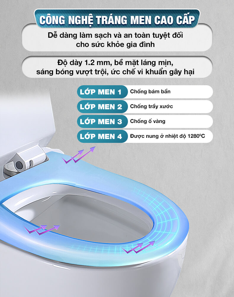 - Thiết kế treo tường, két nước âm tiết kiệm diện tích - Công nghệ FFC hiện đại, vật liệu từ cao lanh chất lượng cao - Nhiệt độ nung: 1280oC - kết tinh chất sứ