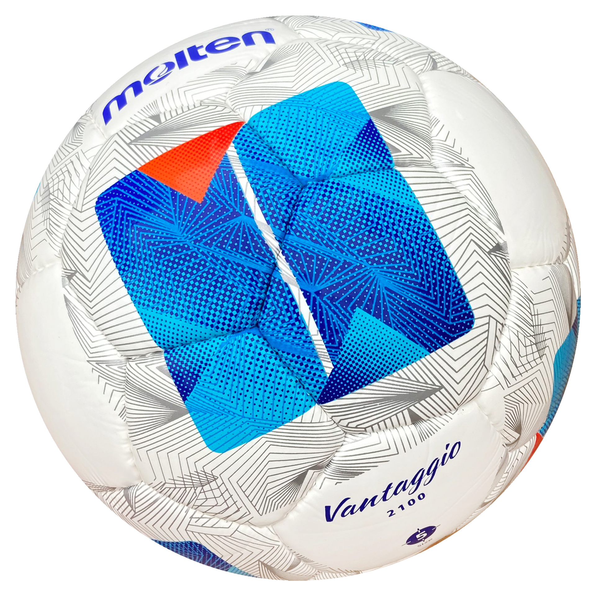Sản phẩm có thiết kế đẹp mắt, màu sắc Trắng – Xanh – Cam cùng nhiều họa tiết sắc nét, tỉ mỉ của thiết kế Thế hệ Vantaggio thứ 5. Bóng tròn đều, họa tiết khỏe khoắn đem lại cho người sử dụng cảm giác hứng thú mỗi khi tập luyện, thi đấu. Bóng sử dụng cho tập luyện sân 7 - sân 11 phong trào hiệu quả.