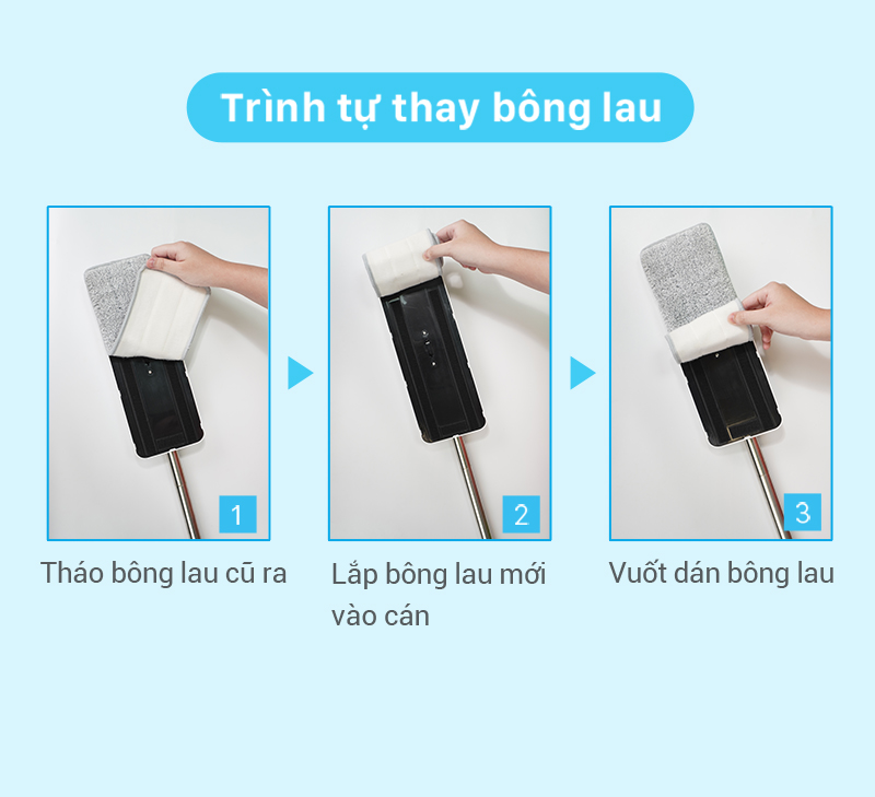 Bông Lau Thay Thế Của Bộ Lau Nhà dùng để thay thế khi đầu lau của cây lau nhà bị hư mà không cần phải mua cả cây lau nhà để tiết kiệm chi phí. Bông
