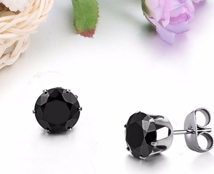Bông tai titan đính đá đen 3mm 4mm 5mm 6mm