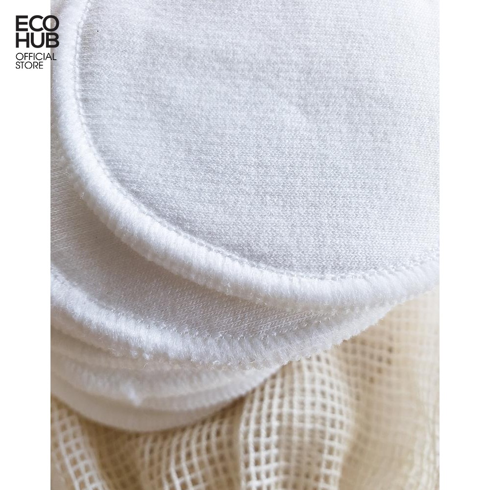 ✨Bông tẩy trang ECOHUB Sợi tre tái sử dụng nhiều lần / Thân thiện Môi trường, 8x8cm (6 miếng + Túi lưới)
