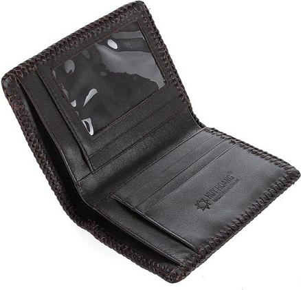 Ví/Bóp nam Huy Hoàng da bò đan viền màu nâu 2136