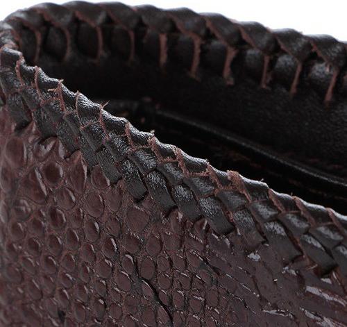 ✨Bóp nam Huy Hoàng da cá sấu nguyên con đan viền kiểu đứng màu nâu đất HT2763