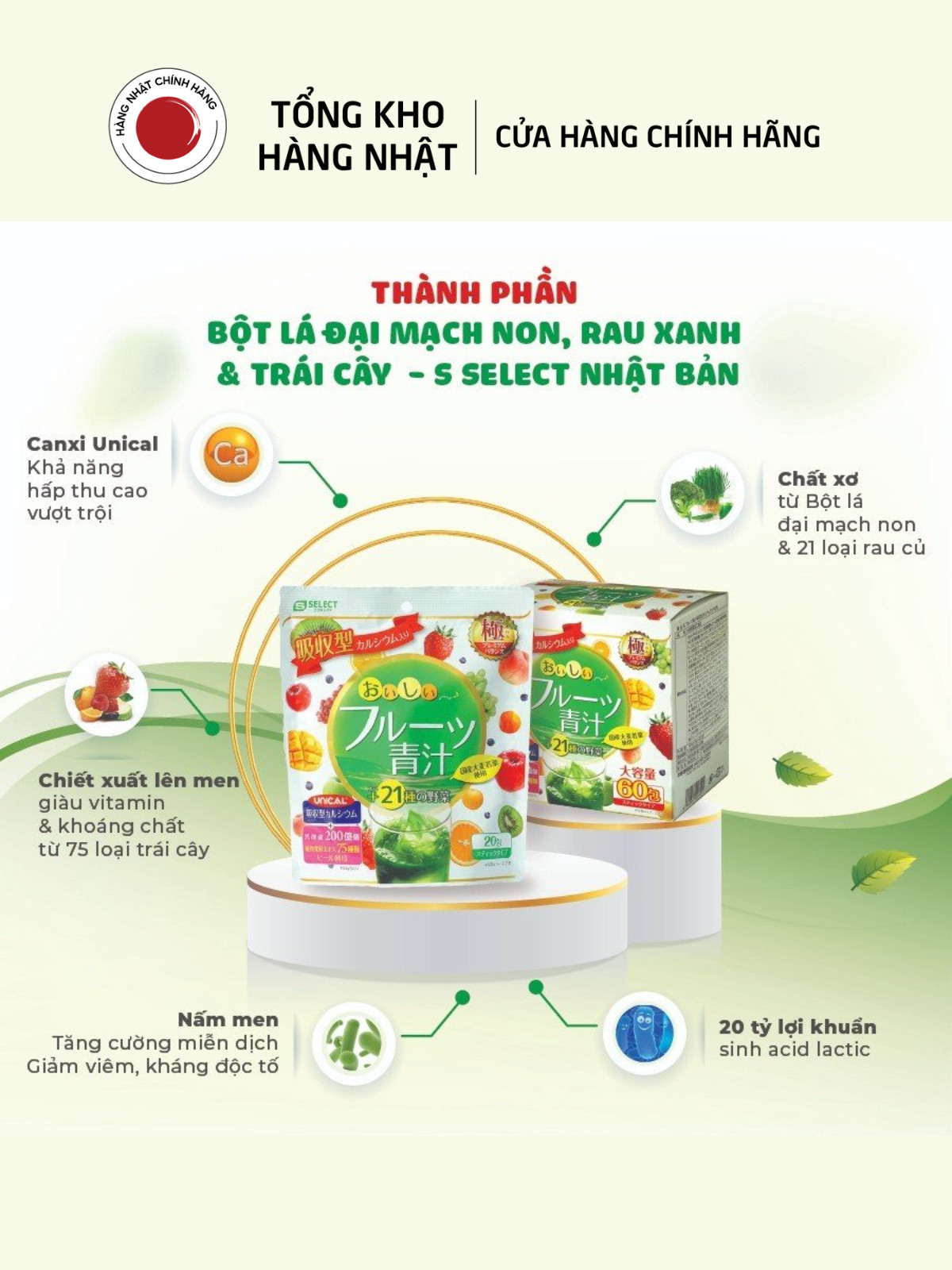✨Bột Lá Đại Mạch Non, Rau Xanh Và Trái Cây S Select Yuwa Thải Độc Cơ Thể, Làm Đẹp Da, Chống Lão Hóa