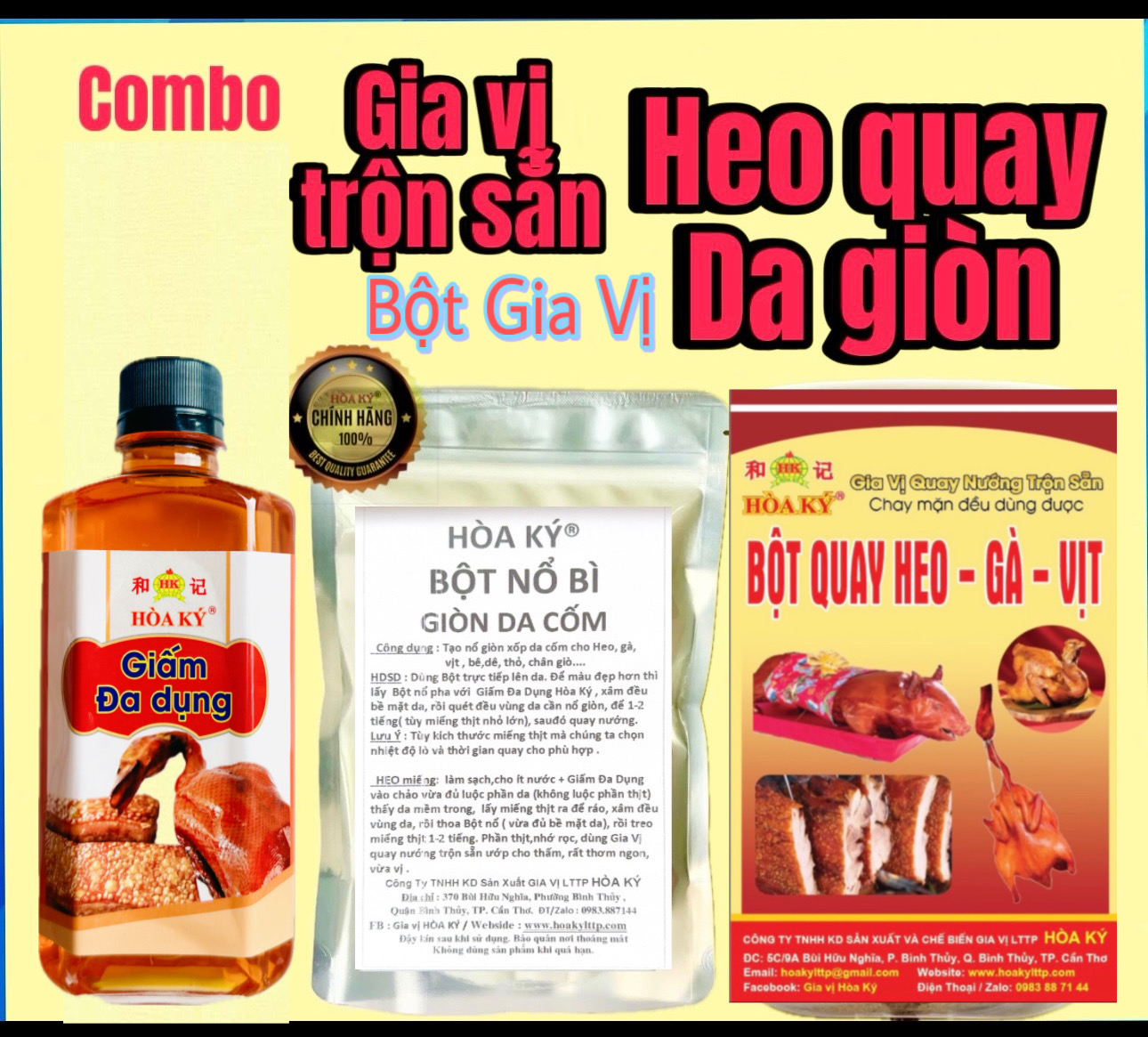 ombo quay nướng đầy đủ gia vị, không cần nêm thêm. Gồm có : Muối nổ bì giòn da cốm Gia vị trộn sẵn ướp phần thịt Giấm (Dấm) đa dụng tạo màu đẹp ,da