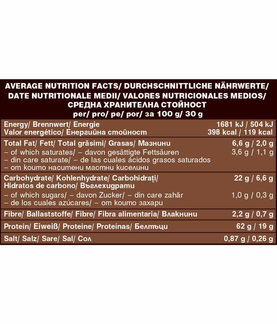 - Không chứa lactose và gluten Thành phần: Protein gạo , protein đậu hà lan (30%), protein gai dầu , protein hạnh nhân (15%). * từ nông nghiệp hữu cơ Cách sử dụng: 2 thìa bột protein shake (30g) với 250ml sữa thưc vật, sữa bò hoặc nước. Thêm chất tạo ngọt nếu muốn.