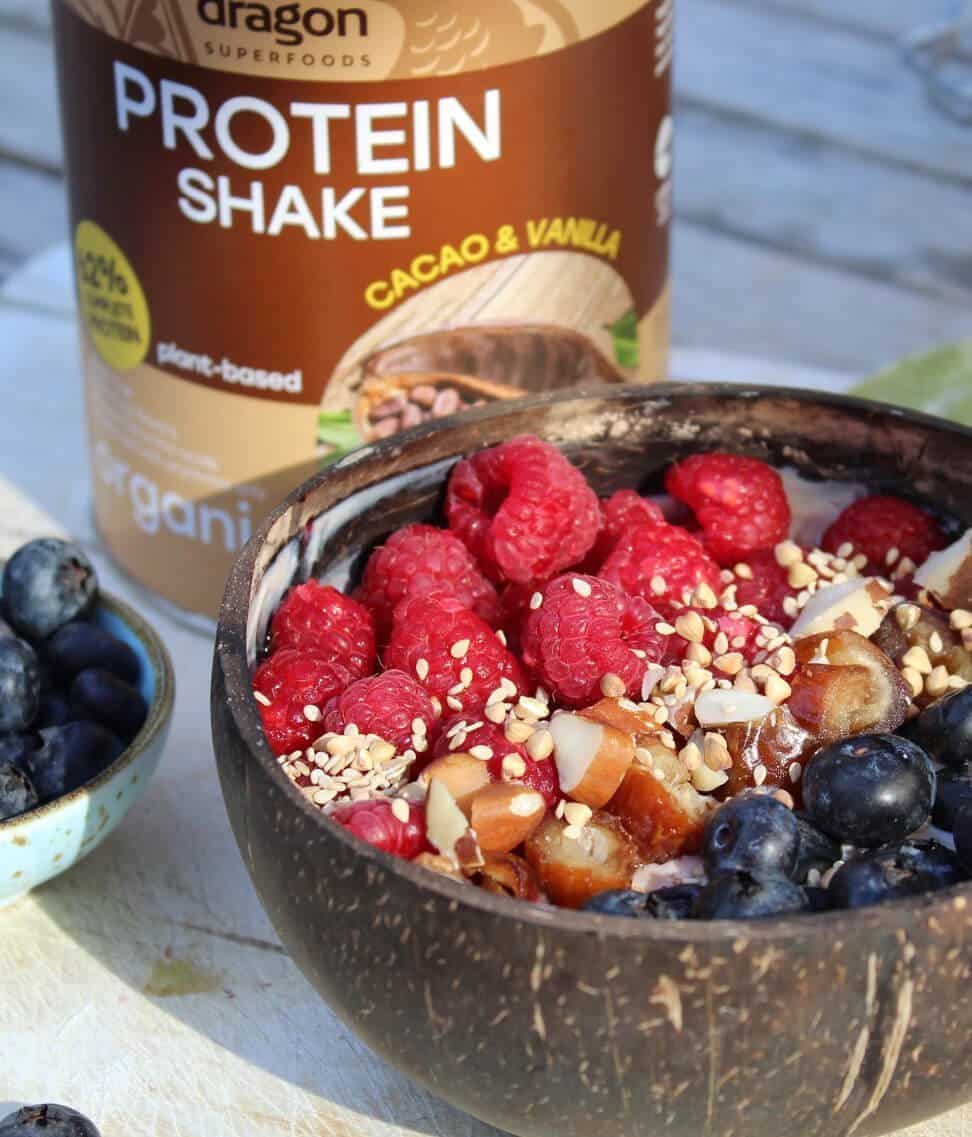 - Bột Protein shake chuối và dừa hữu cơ 450g - Dragon Superfoods Bột protein shake chuối và dừa Dragon Superfoods là thức uống pha sẵn thơm ngon với 52% hàm lượng đạm thực vật. Cơ thể có thể hấp thụ dễ dễ dàng các dưỡng chất để bắt đầu một ngày mới trước và sau khi tập thể dục. Đó là sự kết hợp của các thành phần hữu cơ - một giải pháp vô cùng nhanh chóng cho một ngày bận rộn. Protein thực vật làm phong phú thực đơn với các axit amin, và hương vị thơm ngon của chuối đồng thời kết hợp hoàn hảo với dừa béo ngậy.