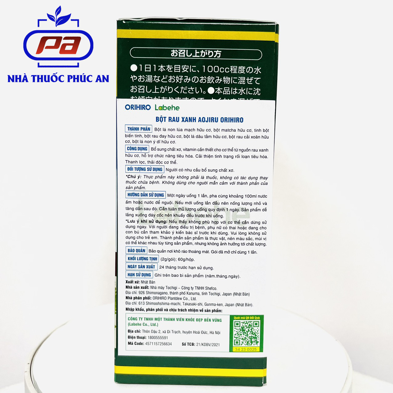 Mua tại TiktokBột rau xanh Aojiru Orihiro bổ xung chất xơ giúp hỗ trợ tiêu hóa, đẹp da, thanh lọc cơ thể 30 gói