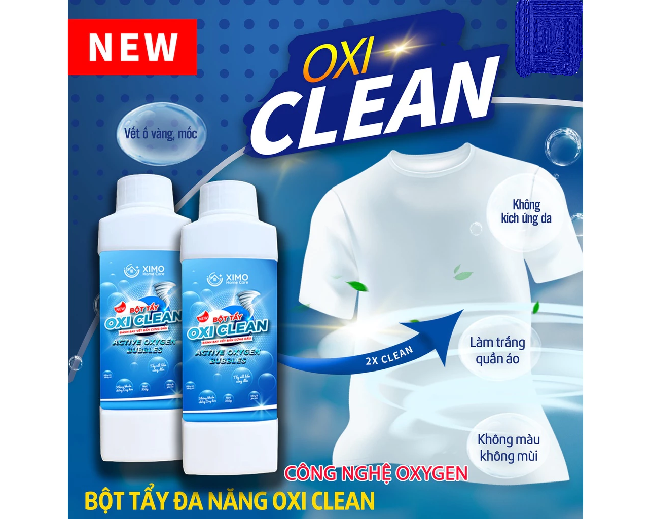 - Có quá nhiều vết bẩn khác nhau trong sinh hoạt hàng ngày đặc biệt quần áo và đồ dùng của bạn, sẽ rất tốn rất nhiều chi phí để xử lý cho từng loại vết bẩn nhưng không hiệu quả và gây mùi không tốt cho sức khỏe, nắm bắt được điều đó, Ximo Home ra mắt bột tẩy vết bẩn đa năng Oxi Clean đánh bay tất cả các loại vết bẩn cứng đầu