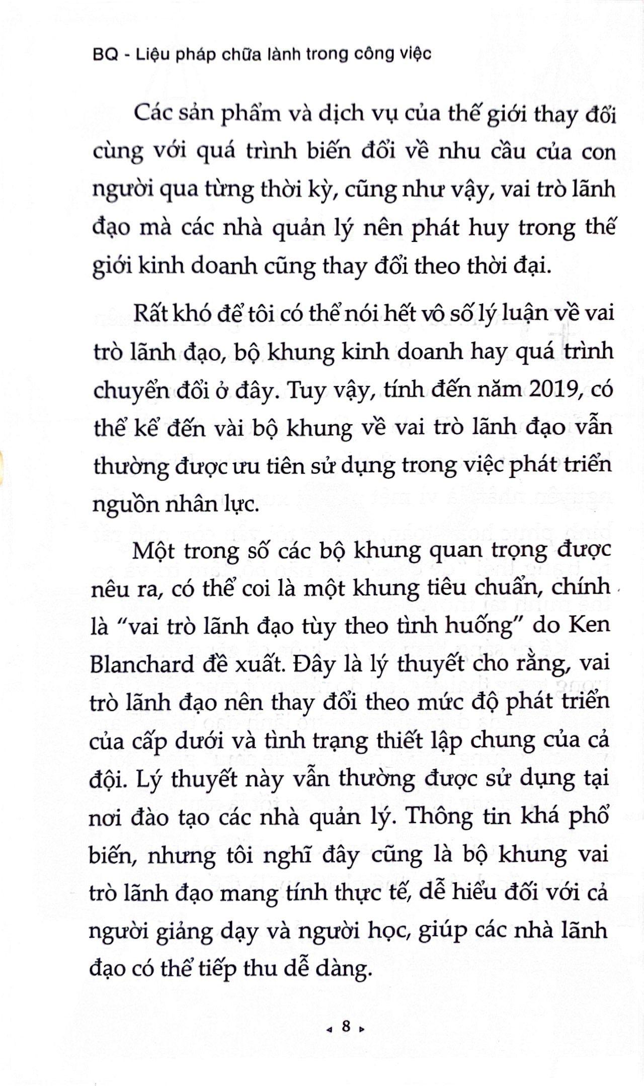 Cuốn sách BQ – Liệu pháp chữa lành trong công việc đi sâu vào tìm hiểu khái niệm BQ, với vai trò là yếu tố nền tảng để mỗi cá nhân phát huy được tối đa tiềm năng của m.ình. Rất đơn giản, nếu bạn không có sức khỏe, bạn không thể làm tốt công việc trong thời gian dài. Cuốn sách hướng dẫn cách để mỗi chúng ta có thể kiểm soát được sức khỏe thể chất cũng như sức khỏe tinh thần của bản thân trong mọi lĩnh vực nghề nghiệp. Đây chính là cơ sở để bạn gia tăng hiệu suất làm việc và đóng góp tích cực vào sự phát triển bền vững của mọi tổ chức.