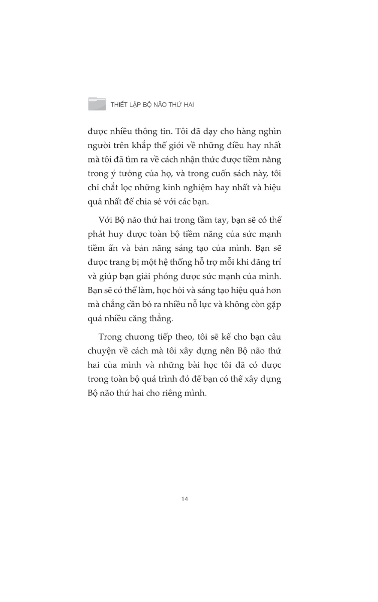 Mua tại TiktokBuiding A Second Brain - Thiết Lập Bộ Não Thứ Hai GIỚI THIỆU SÁCH: Trong thời đại công nghệ thông tin phát triển mạnh mẽ, việc truy cập vào kho tàng kiến thức khổng lồ trở nên dễ dàng hơn bao giờ hết, nhưng cũng đặt ra thách thức về việc quản lý và sử dụng thông tin. Building A Second Brain - Thiết Lập Bộ Não Thứ Hai của Tiago Forte là một cuốn sách mang tính cách mạng, cung cấp hướng dẫn chi tiết về cách xây dựng hệ thống quản lý thông tin cá nhân hiệu quả. Cuốn sách giới thiệu khái niệm "bộ não thứ hai" - một kho lưu trữ kỹ thuật số có tổ chức và đáng tin cậy, giúp bạn lưu trữ, sắp xếp và sử dụng hiệu quả thông tin từ các ý tưởng, ghi chú sáng tạo đến kinh nghiệm quan trọng, đồng bộ hóa trên tất cả các thiết bị và nền tảng. Cuốn sách sẽ giúp bạn xây dựng một hệ thống lưu trữ thông tin cá nhân hiệu quả, tổ chức và lọc thông tin dễ dàng tìm kiếm và sử dụng, áp dụng hệ thống Second Brain vào cuộc sống hàng ngày để đưa ra quyết định và giải quyết vấn đề hiệu quả hơn. Bạn sẽ học cách tự động hóa và tối ưu hóa quy trình lưu trữ và xử lý thông tin, biến những gì bạn biết thành những cải tiến mạnh mẽ và có ý nghĩa trong công việc và cuộc sống. Về tác giả Tiago Forte, ông là một trong những chuyên gia hàng đầu về hiệu suất cá nhân, đã giảng dạy cho hàng nghìn người về các nguyên tắc thời gian và công nghệ tiên tiến nhất để cách mạng hóa năng suất, sự sáng tạo và hiệu quả cá nhân. Ông từng làm việc với nhiều tổ chức lớn như Genentech, Tập đoàn Toyota Motor và Ngân hàng Phát triển Inter-American. Tiago Forte cũng xuất hiện trên nhiều ấn phẩm uy tín như New York Times, The Atlantic và Harvard Business Review.