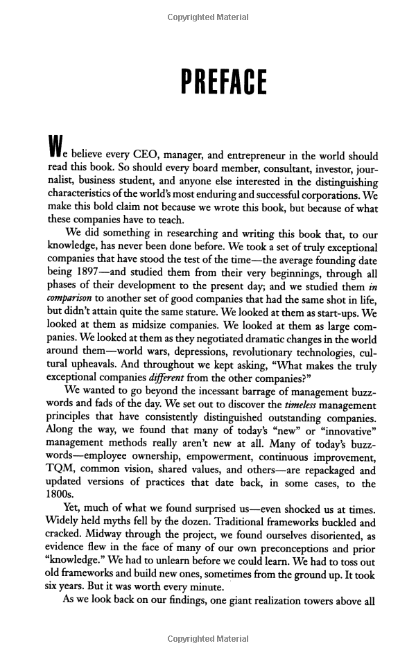"This is not a book about charismatic visionary leaders. It is not about visionary product concepts or visionary products or visionary market insights. Nor is it about just having a corporate vision. This is a