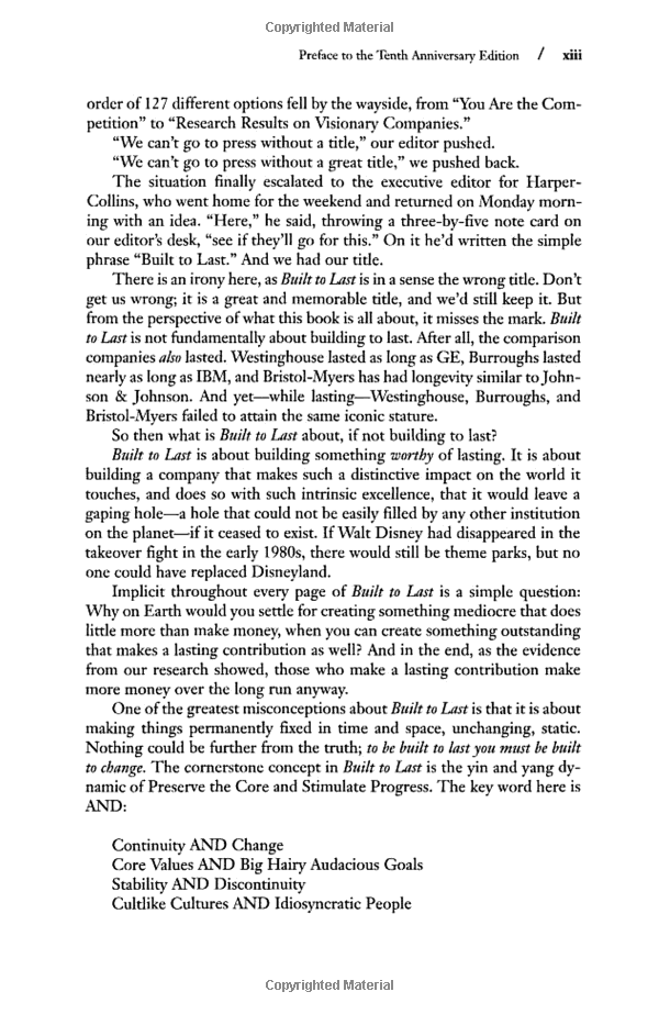 "This is not a book about charismatic visionary leaders. It is not about visionary product concepts or visionary products or visionary market insights. Nor is it about just having a corporate vision. This is a