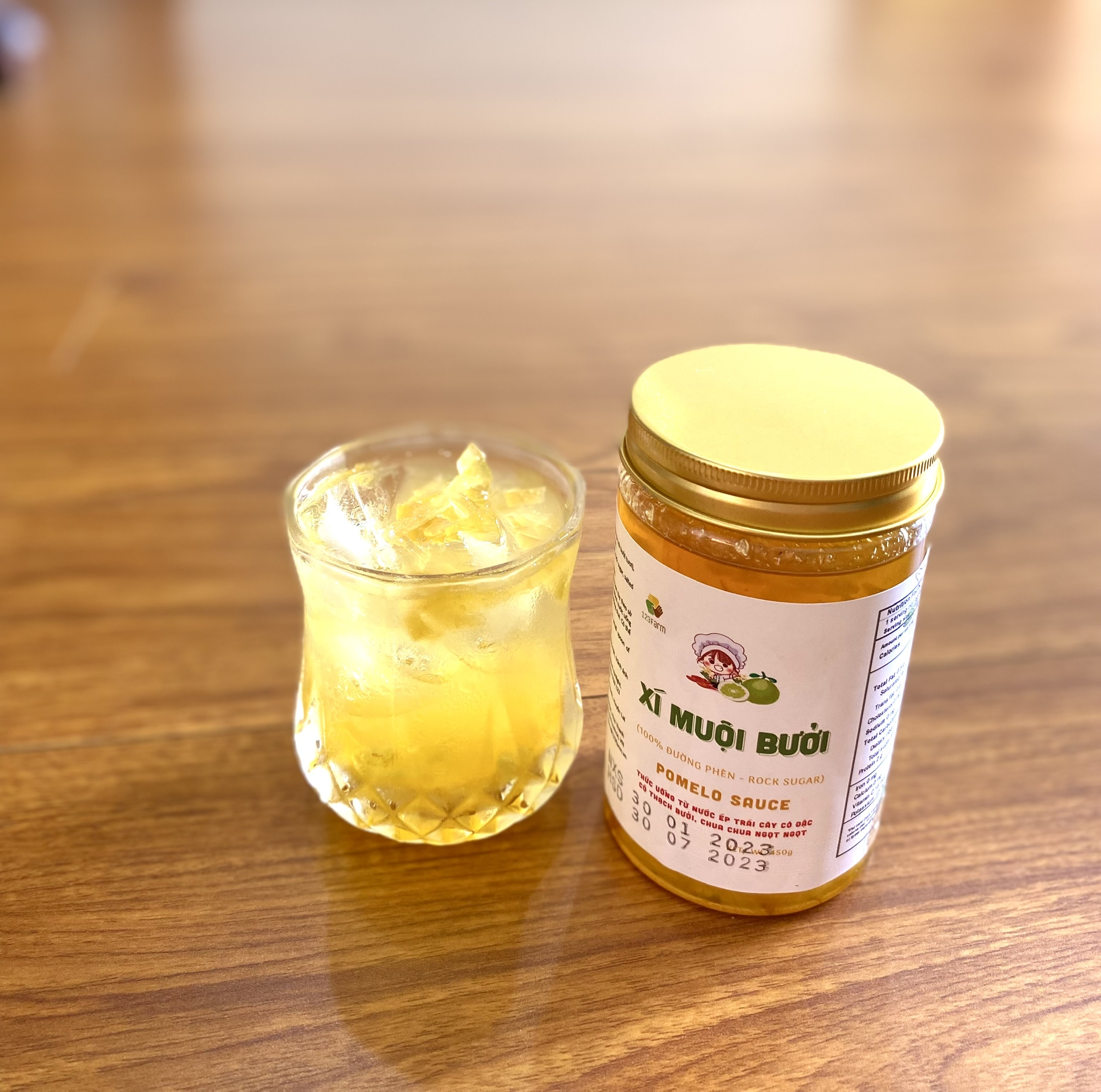 Bưởi Xí Muội là nước uống trái cây tự nhiên được pha chế theo công thức đặc biệt của 123 Farm. Bưởi tươi được nấu với đường phèn tạo ra một loại nước uống chua