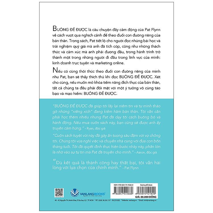 “Buông để được đã giúp tôi lấy lại niềm tin và tự mình tháo gỡ những “xiềng xích” đang kiềm hãm bản thân. Tôi vẫn cần phải học thêm nhiều nhưng Pat đã dạy tôi cách buông bỏ và hành động. Nếu mua cuốn sách này, bạn cũng sẽ được anh ấy truyền cảm hứng.” - Ryan, độc giả