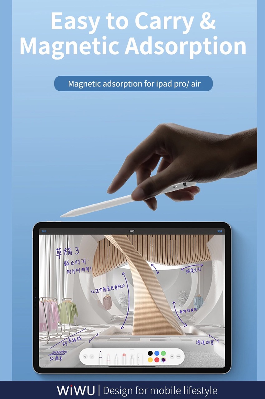 Bút Cảm Ứng WIWU Pencil A01 dòng bút mới nhất đến từ WiWU tương thích tốt cho các dòng ipad hiện nay. WIWU Pencil A01 với cổng sạc USB-C và hỗ trợ cảm biến chống