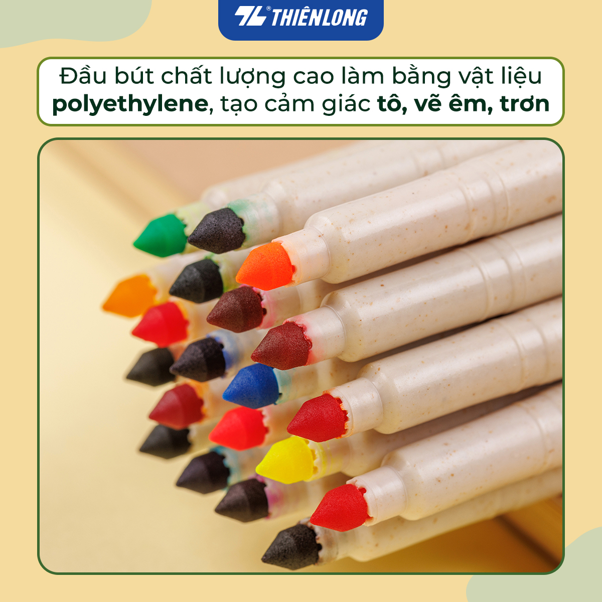 Thương hiệu: Thiên Long Xuất xứ: Việt Nam   TÍNH NĂNG SẢN PHẨM: ️Thân bọc nhựa, ngòi sợi Polyester ️Màu sắc tươi sáng đúng chuẩn màu mỹ thuật. ️Hoàn toàn không độc hại,