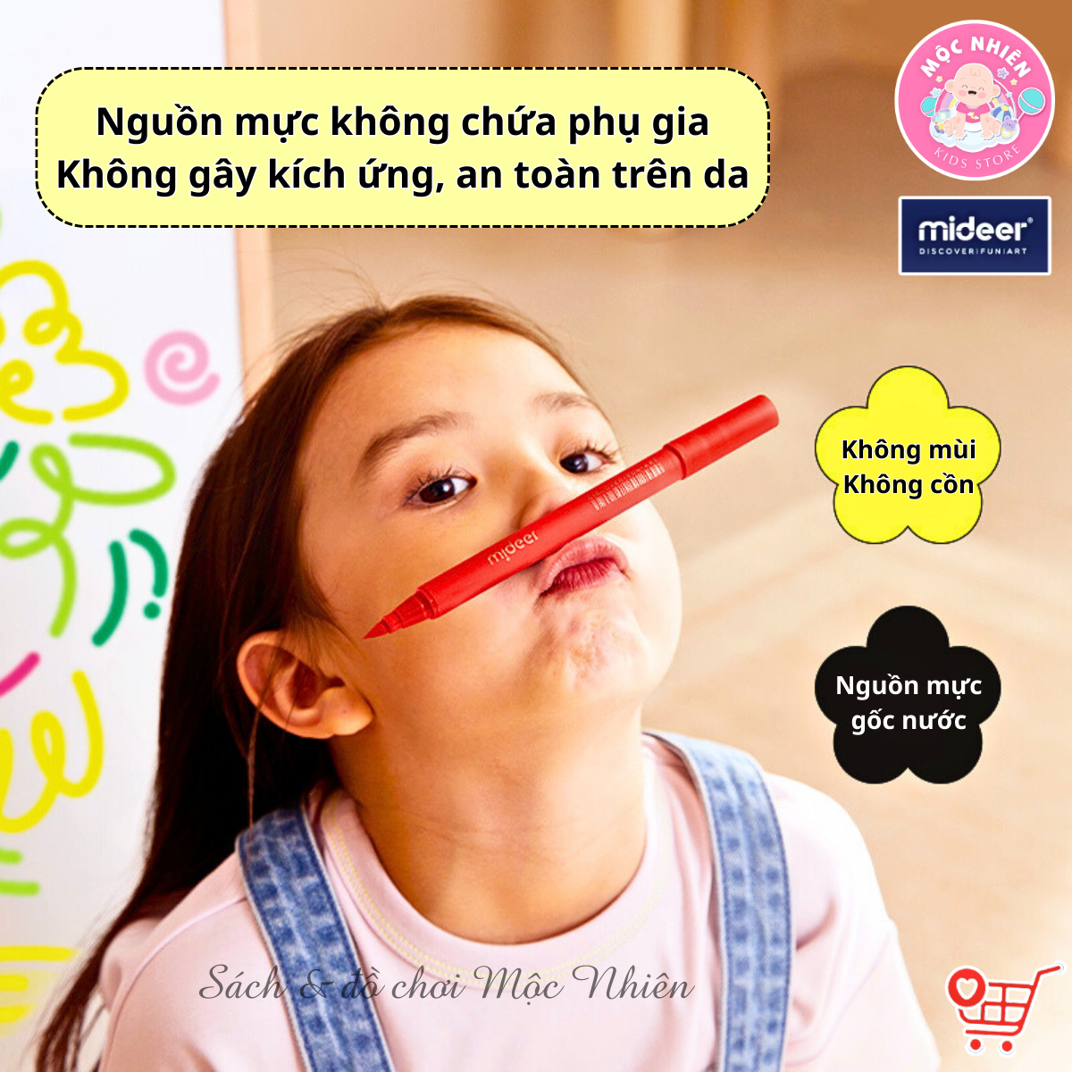 • Màu mực an toàn cho bé, viết được trên nhiều bề mặt vải, giấy, gỗ hay kính. Màu sắc tươi sáng bắt mắt, Dễ dàng vệ sinh và lau chùi...
