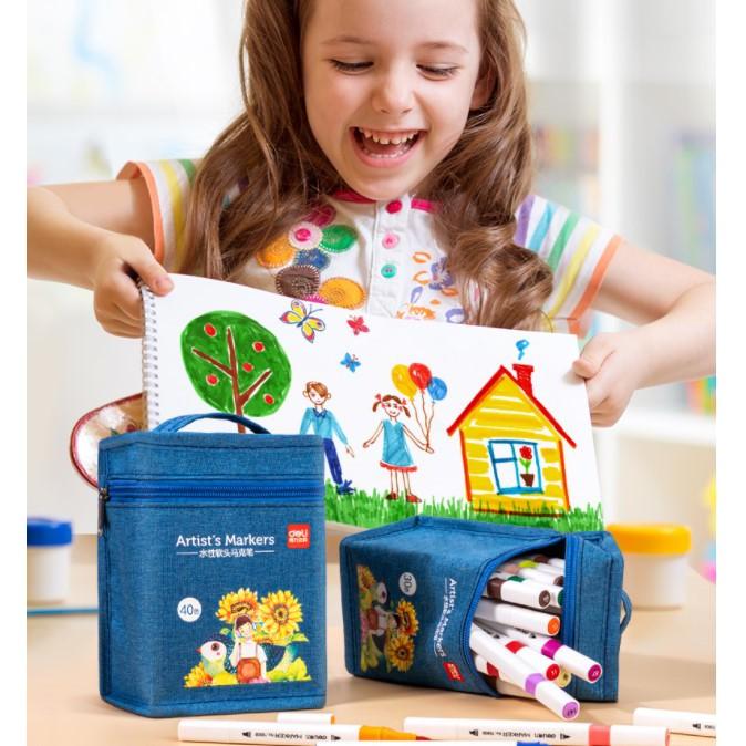 ✨Bút màu marker 2 đầu túi vải Deli - mực có thể rửa được - có đầu brush và vát - 30 màu/40màu/60màu/80màu -70808