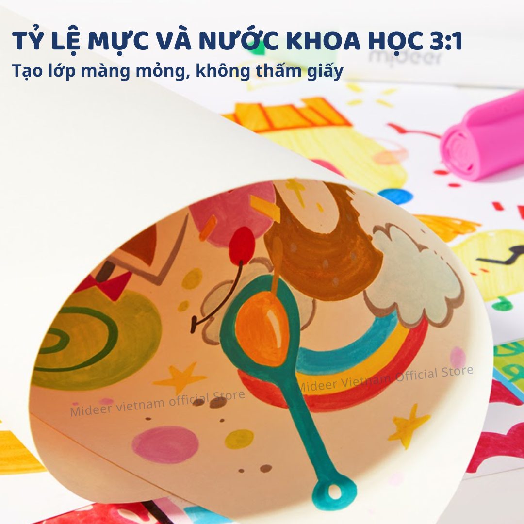 Mua tại TiktokCHÀO MỪNG BẠN ĐẾN VỚI MIDEER VIETNAM HÀNG SẴN SHIP HỎA TỐC, BẢO HÀNH CHÍNH HÃNG ————————————— Bút màu nước cho bé Mideer, bút lông xóa được an toàn cho bé Washable Marker Khám phá thế giới nghệ thuật đầy màu sắc với Bút màu nước cho bé Mideer sản phẩm hoàn hảo giúp trẻ thỏa sức sáng tạo mà không lo lắng về vết bẩn. Được thiết kế với chất liệu an toàn và dễ dàng vệ sinh, mỗi bút màu như một người bạn đồng hành, khuyến khích bé vẽ nên những bức tranh tuyệt đẹp. 9 Lý do ba mẹ nên lựa chọn bút màu nước cho bé Mideer, bút lông xóa được an toàn cho bé
