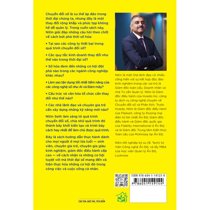 Nitin đưa vào cuốn sách này hơn 25 năm kinh nghiệm trong vai trò lãnh đạo các công ty tầm cỡ thế giới như Mckinsey và Fidelity lẫn doanh nghiệp bẩm sinh số như Flipkart và Incedo. Ông trình bày những hiểu biết sâu sắc và ví dụ thực tế, đồng thời giải đáp các câu hỏi then chốt về cách doanh nghiệp có thể bứt phá trong thời đại số: