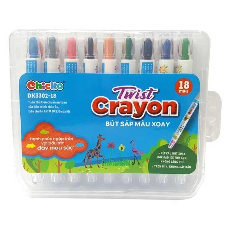 Bút Sáp Màu Xoay - 18 Màu DK 3302-18 (Hộp Nhựa PP) Sản phẩm được làm từ chất liệu sáp cao cấp, độ bám dính cao, màu sắc tự nhiên, an toàn cho sức khỏe