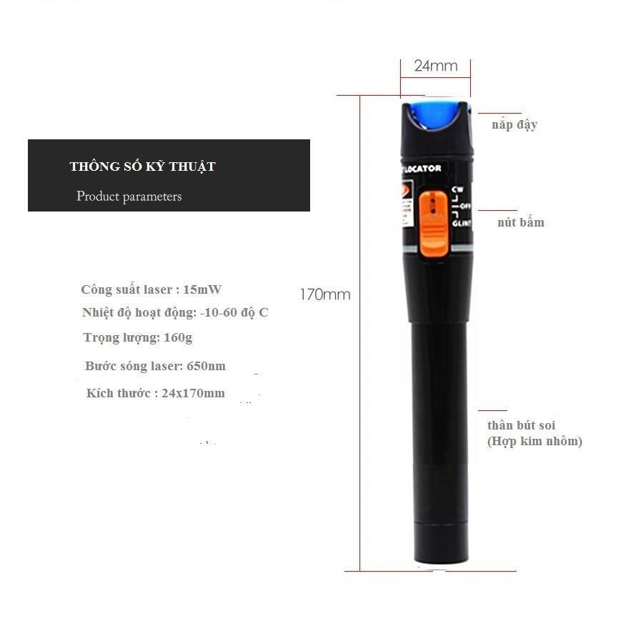 Bút soi sợi quang 10km Bút soi quang 10km là sản phẩm chuyên dụng dùng để phát hiện lỗi và đo thông sợi quang bằng ánh sáng đỏ nhìn thấy. Được thiết kế nhỏ gọn
