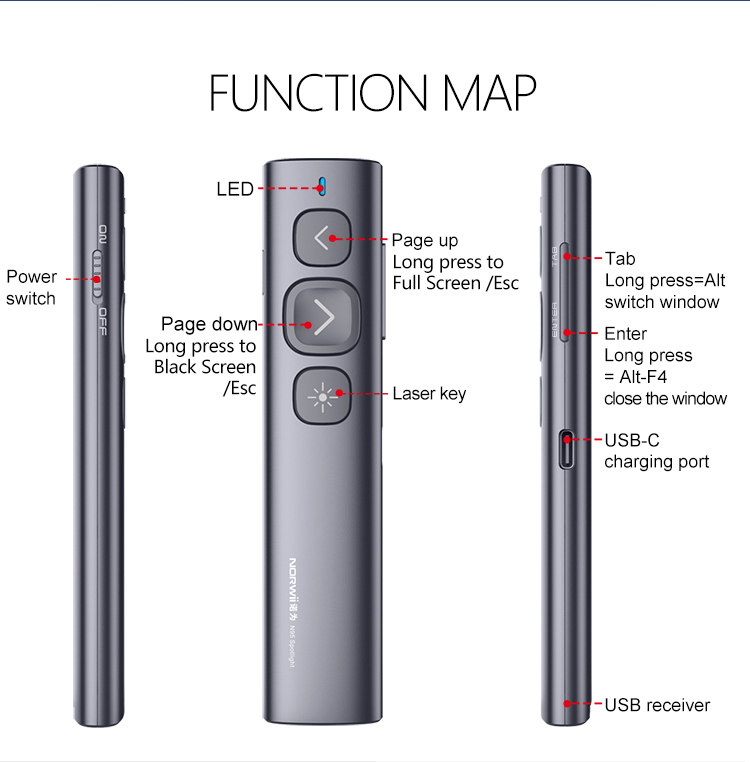 Bút trình chiếu Bluetooth dùng cho màn hình led Norwii N97S-G/R laser màu xanh/đỏ Video giới thiệu Bút trình chiếu Bluetooth dùng cho màn hình led Norwii N97S-G laser màu xanh Tính Năng Nổi Bật