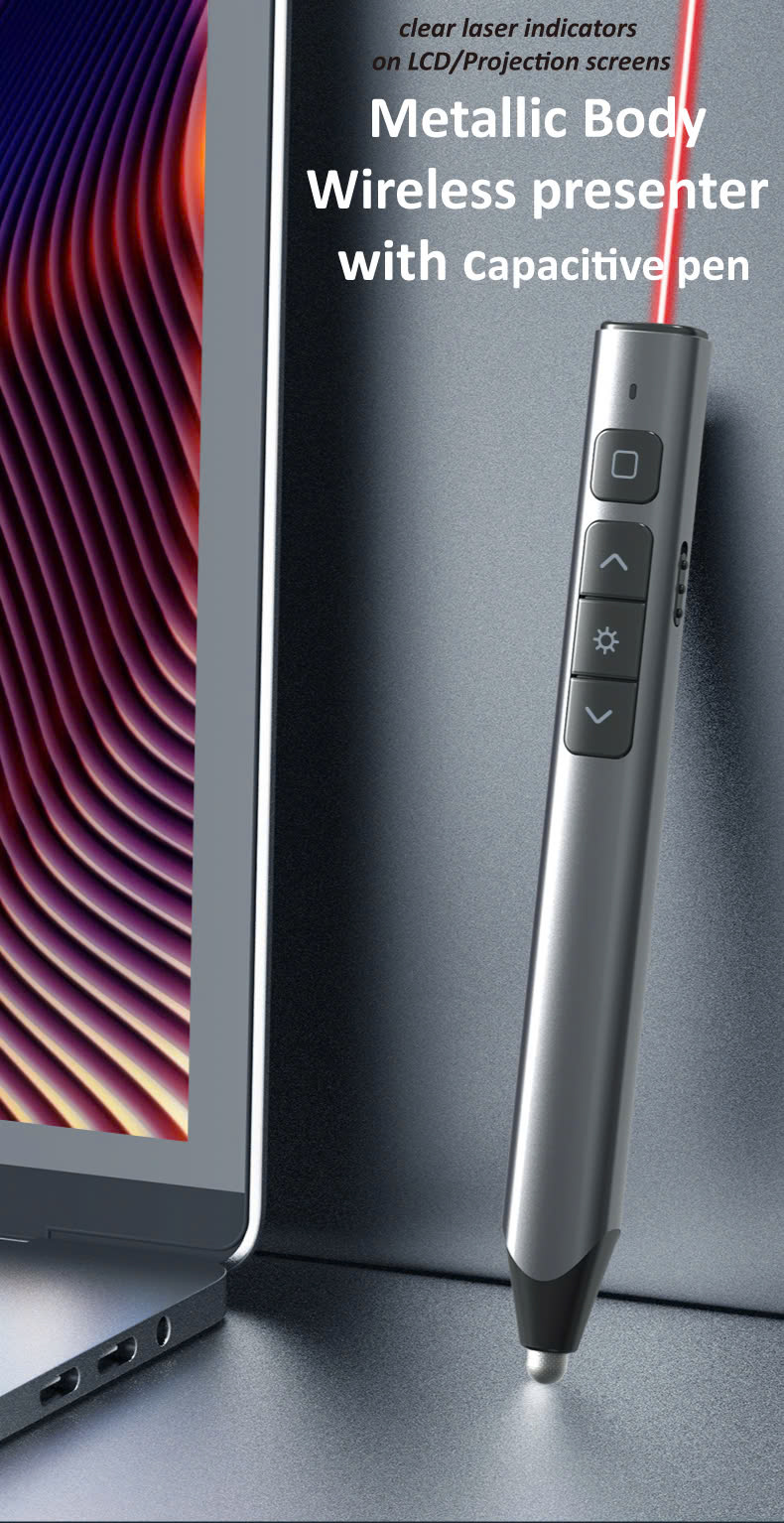 Laser xanh: Người dẫn chương trình không dây với tia laser màu xanh lá cây hiển thị tốt hơn trên nhiều nền khác nhau, ánh sáng xanh lục tươi sáng giúp bạn chỉ rõ mọi thứ