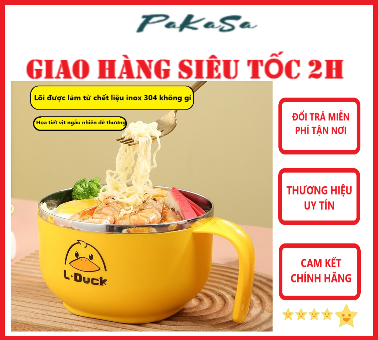 Mua tại TiktokCa Ăn Mì , Ca Đựng Cháo Giữ Nhiệt, Tô khuấy Bột Ăn Dặm Cho Bé Hình Vịt Vàng Đáng Yêu - Chính Hãng