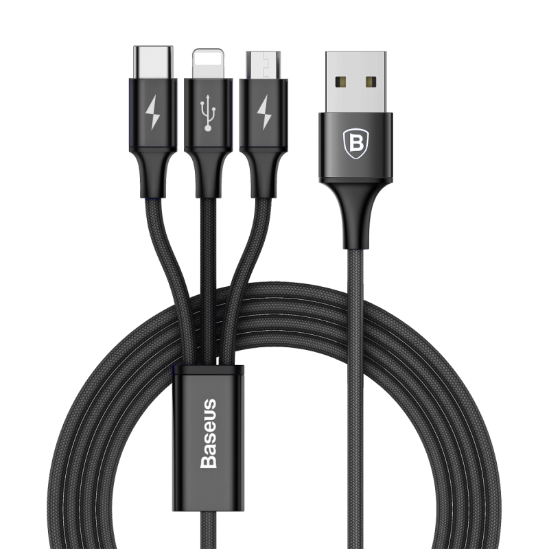 ✨Cáp sạc nhanh 3A Baseus Rapid kết nối 3 đầu Type-C /Micro/ iPhone dây siêu bền cho Smartphone ( 3 màu ) - Hàng chính hãng