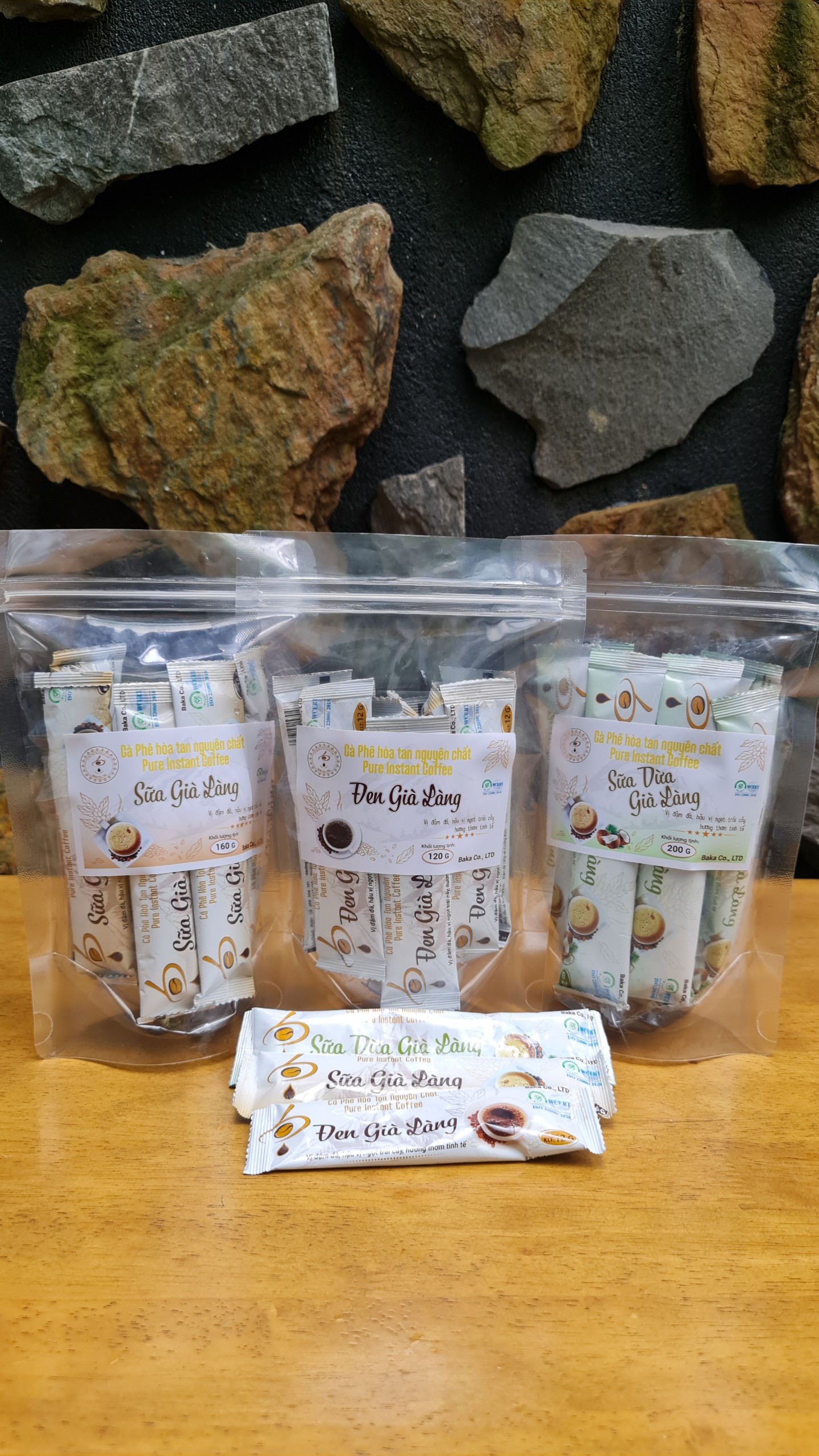 Cà Phê Hòa Tan Nguyên Chất SỮA GIÀ LÀNG - Bì Zip - Sản phẩm làm từ cà phê nguyên chất, không sử dụng chất độn, không sử dụng đường Maltodextrin. - Nguyên liệu được