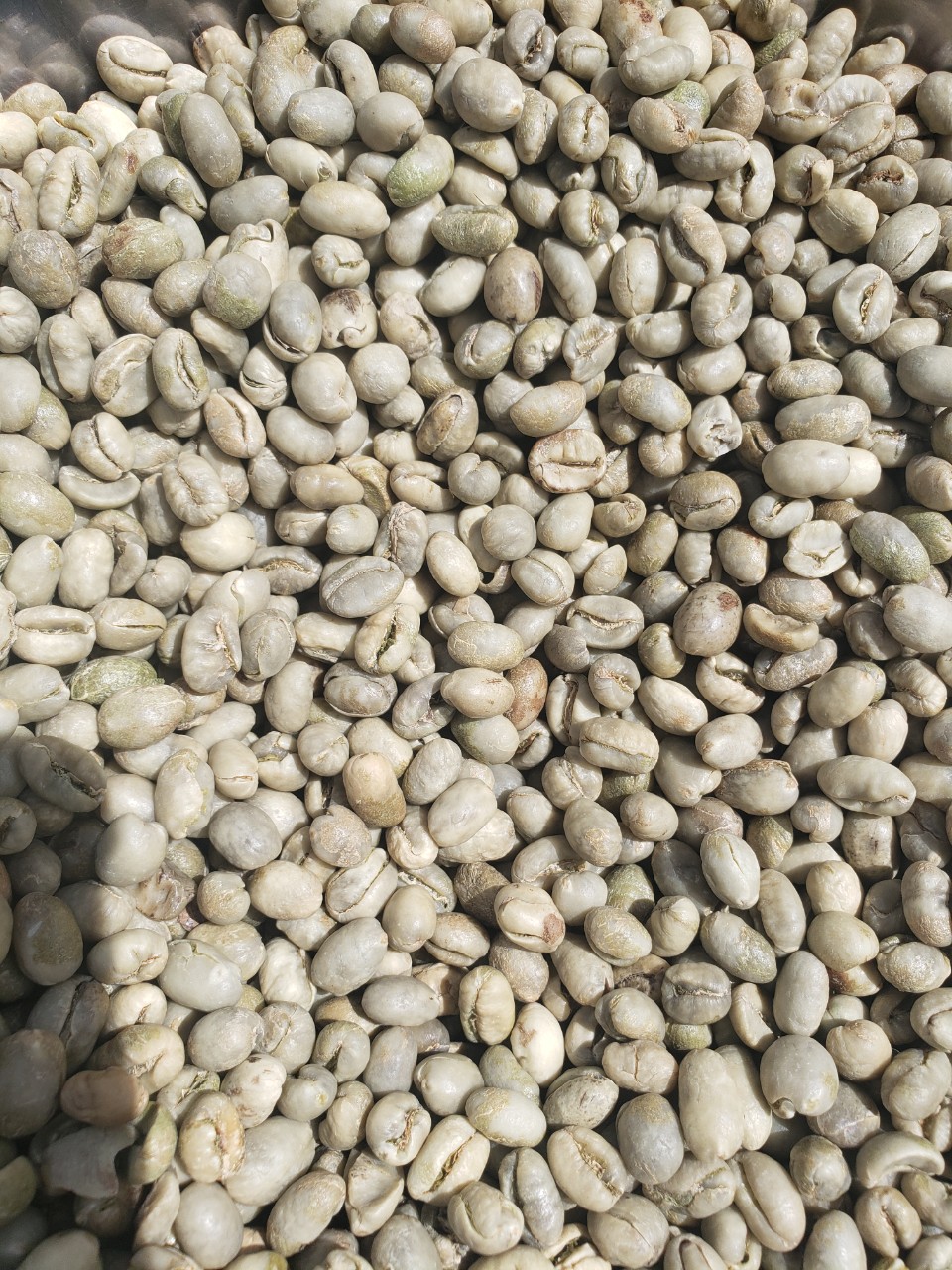 Cà phê nhân xanh Arabica Moka chưa qua chế biến. Moka của baka sử dụng nguyên liệu từ những vườn cà phê thuần arabica ít ỏi còn sót lại bên sườn núi Ngọc Linh, vùng