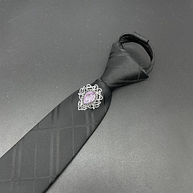 Cà vạt 6cm màu đen thắt sẵn kẻ ziczac đính đá tím hồng sang trọngCà vạt 6cm màu đen thắt sẵn kẻ ziczac đính đá tím hồng sang trọng