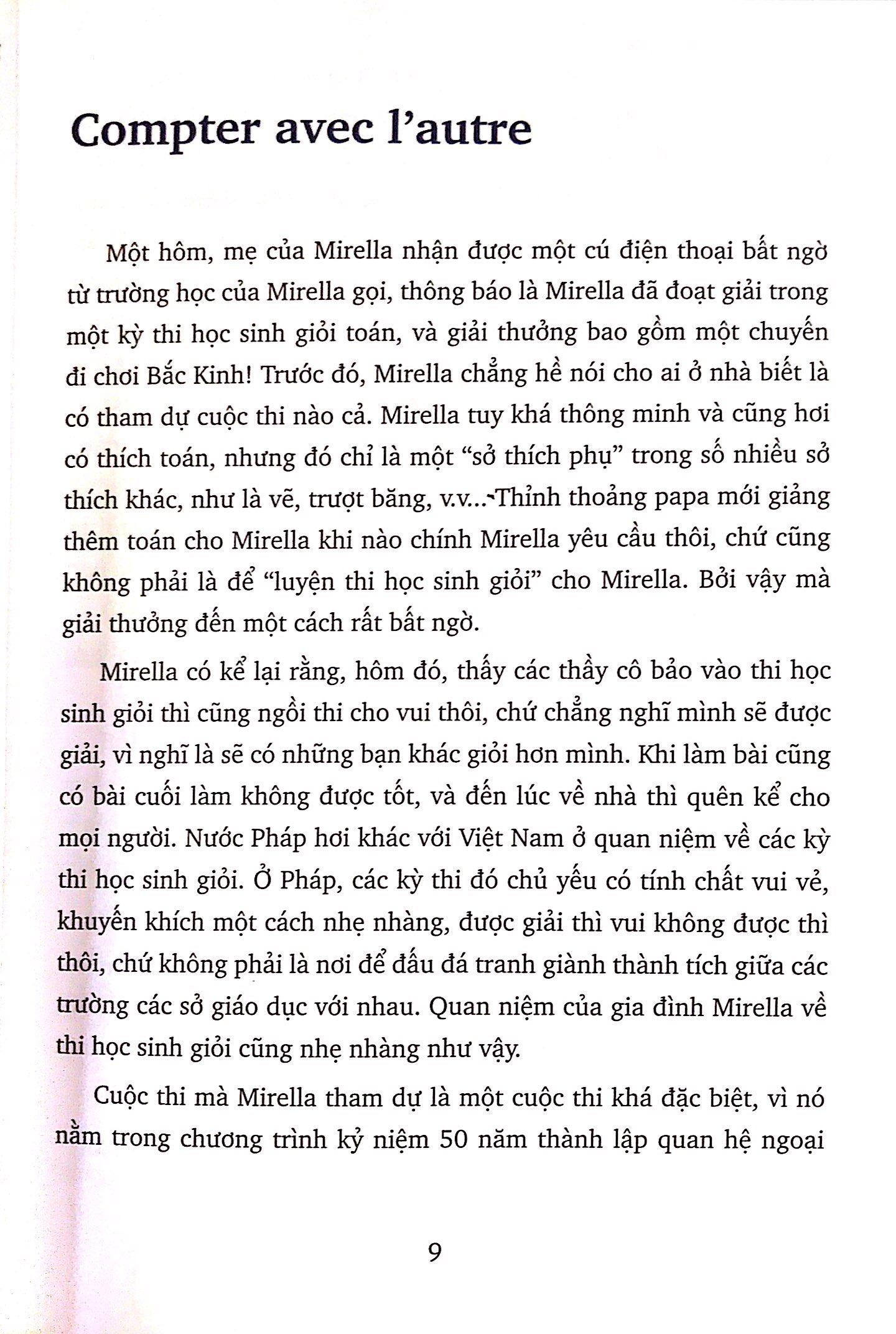 Xen kẽ chặng đưòng tham quan đó, ta gặp muôn vàn vưòn hoa đa sắc của khoa học trái đất (trái đất và dải ngân hà), của khoa học sự sống (con thỏ và đòi sống sinh sản, vận tốc, gia tốc), của khoa học nhân văn (về đạo đức kinh doanh, trò chơi xổ số, cuộc thi “Compter avec l’autre”) đến các hoạt động xảy ra thường nhật ỏ môi trường quanh ta ...Đặc biệt, tác giả cuốn sách này, GS. TS Nguyễn Tiến Dũng, đã được biết đến không chỉ như là một nhà toán học thành danh mà ông còn có một xuất xứ đặc biệt, trưởng thành từ một cậu bé thông minh thiên bẩm có năng khiếu toán học ngay từ thuở thiếu thời từ khi còn theo học ỏ khối Chuyên Toán Ao, rồi được chọn vào đội tuyển quốc gia đi thi Olympic Toán quốc tế (IMO) khi chưa đến 15 tuổi và giành Huy chương vàng quốc tế. có lẽ cũng chính vì vậy mà nội dung cuốn sách này được viết theo một sắc thái đặc biệt, nhiều chủ đề sau vài nét “chấm phá” theo kiểu tâm sự của tác giả về các vấn đề xem ra rất sơ đẳng ta bỗng cảm thấy như “vút lên” cao tói chín tầng mầy những điều “cao siêu viển vông” xa vòi vậy. Lại có những chủ đề được tác giả dừng lại rất lâu như để suy tư rồi cho ra vài nét chấm phá phác họa để cho bạn đọc mà suy tư và tiếp tục (continue) như kiểu chương hồi, xem đến hồi sau có thể sẽ rõ.