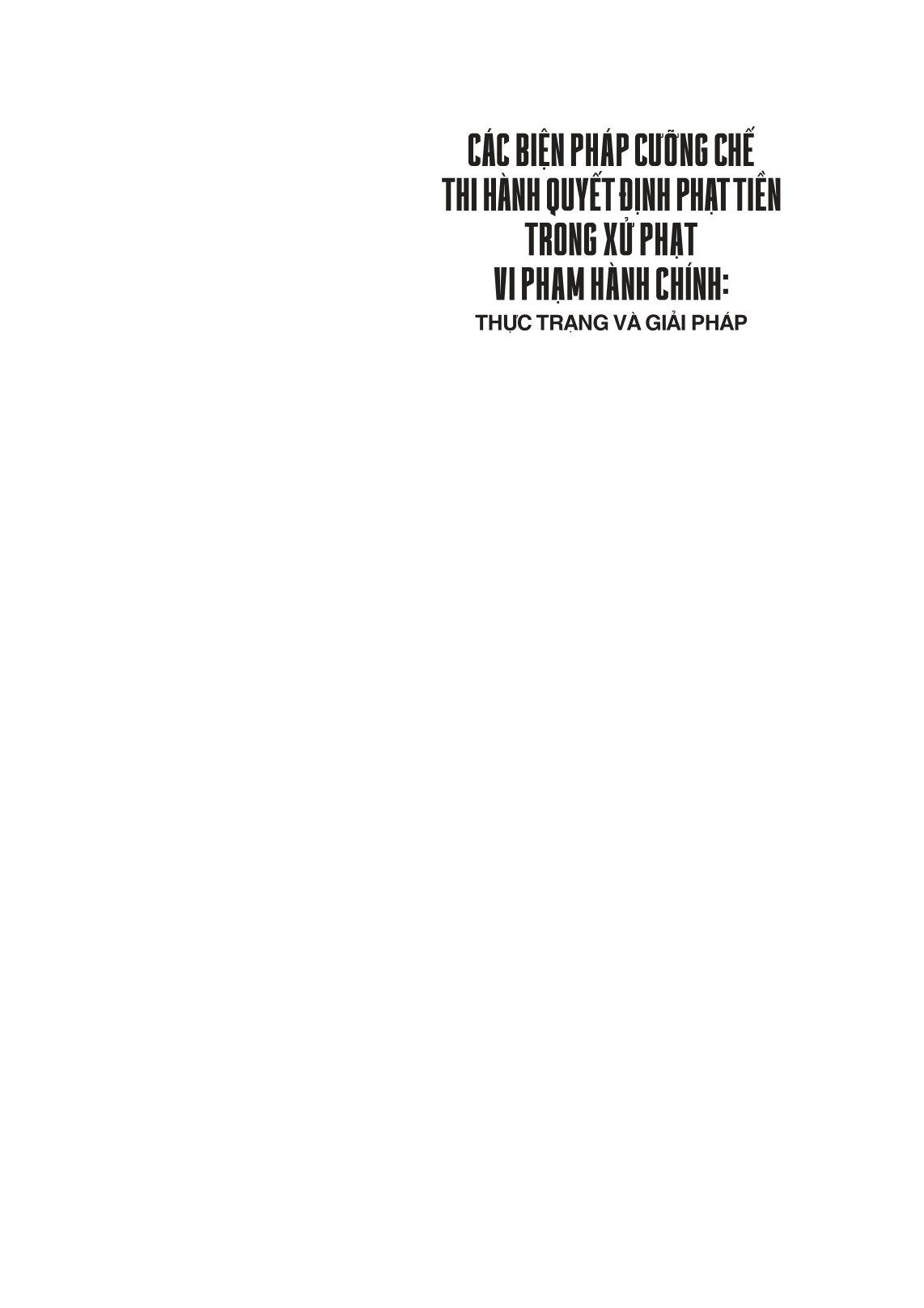 Cuốn sách tập trung phân tích cơ sở lý luận và pháp lý về các biện pháp cưỡng chế thi hành quyết định phạt tiền kết hợp với đánh giá thực trạng pháp luật cũng như thực trạng áp dụng các biện pháp này. Ngoài ra, cuốn sách cũng nêu lên những bất cập của pháp luật khi quy định một số nội dung liên quan (như các trường hợp bị cưỡng chế, thẩm quyền cưỡng chế, xử lý vi phạm liên quan đến việc áp dụng các biện pháp cưỡng chế, sự chồng chéo về số lượng cũng như nguyên tắc áp dụng các biện pháp cưỡng chế và những vấn đề khó khăn, trở ngại trong quá trình áp dụng từng biện pháp cưỡng chế cụ thể), từ đó đề xuất các giải pháp để hoàn thiện pháp luật về các biện pháp cưỡng chế thi hành phạt tiền trong xử phạt vi phạm hành chính.