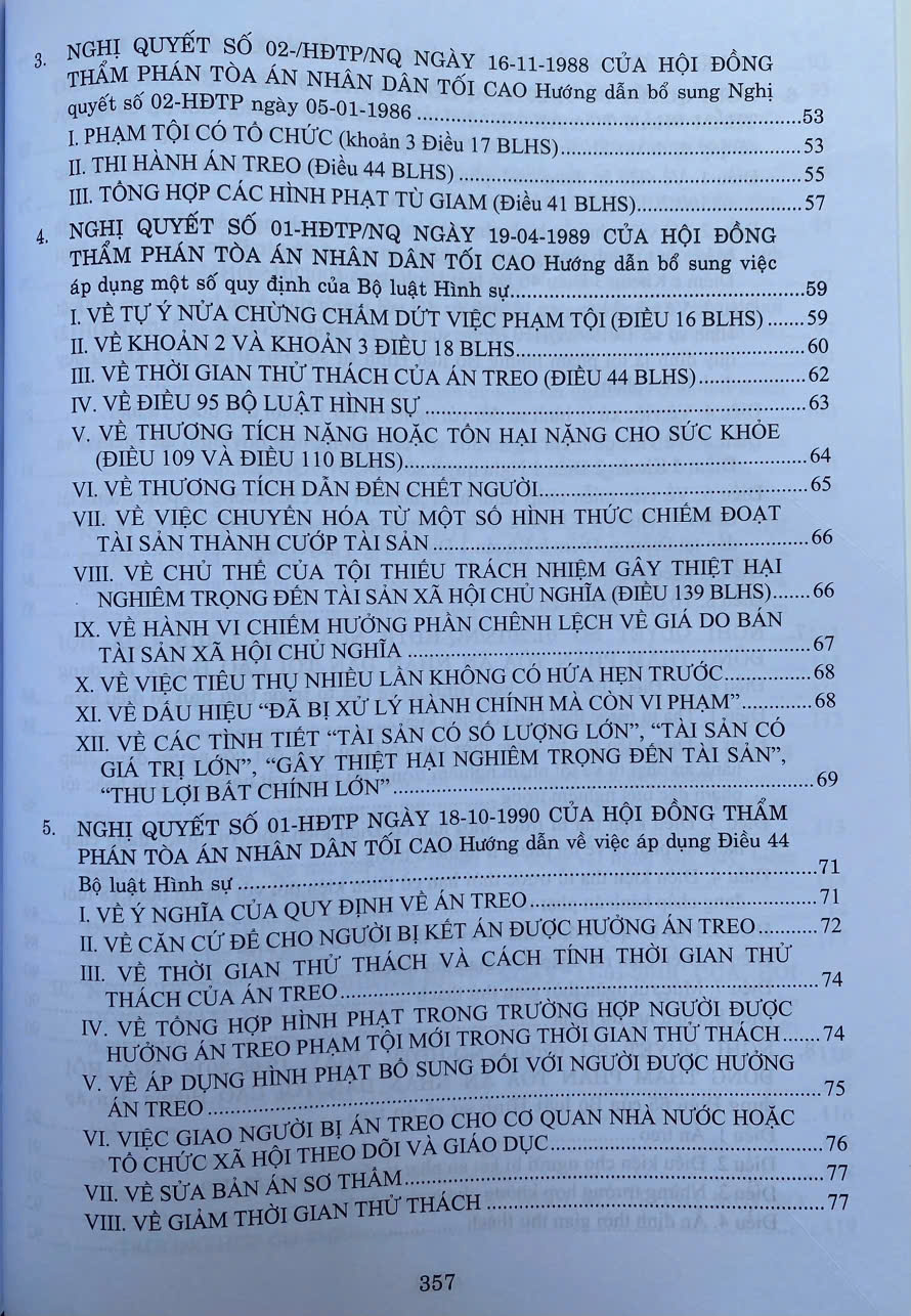 Các Nghị Quyết Của Hội Đồng Thẩm Phán Tòa Án Nhân Dân Tối Cao Hướng Dẫn Thi Hành Bộ Luật Hình Sự Hiện Hành