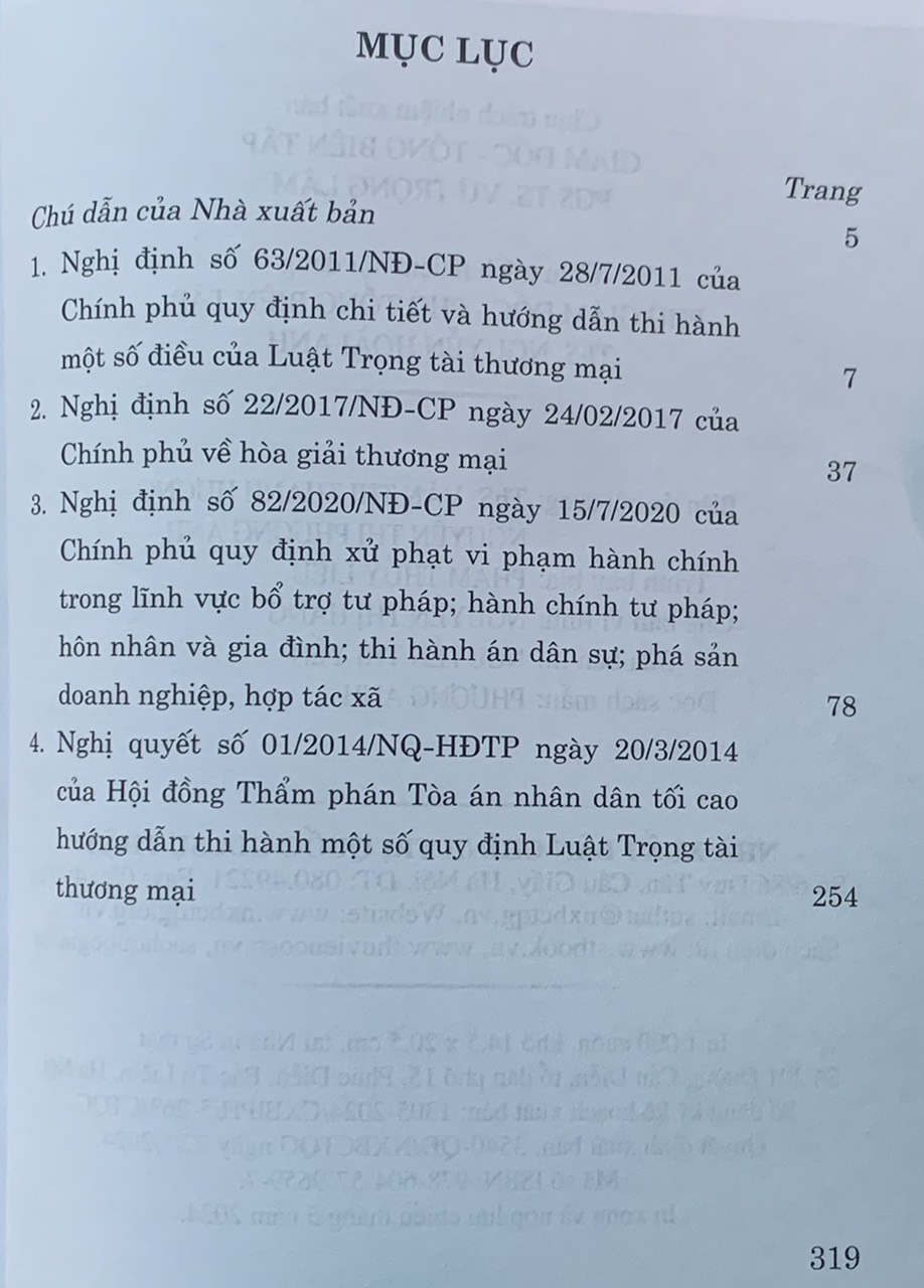 Các quy định pháp luật hướng dẫn Luật Trọng tài thương mại Tác giả: Quốc Hội Nhà xuất bản: Chính Trị Quốc Gia Sự Thật Khổ sách: 14.5 x 20.5 cm Năm phát hành: 5/2024
