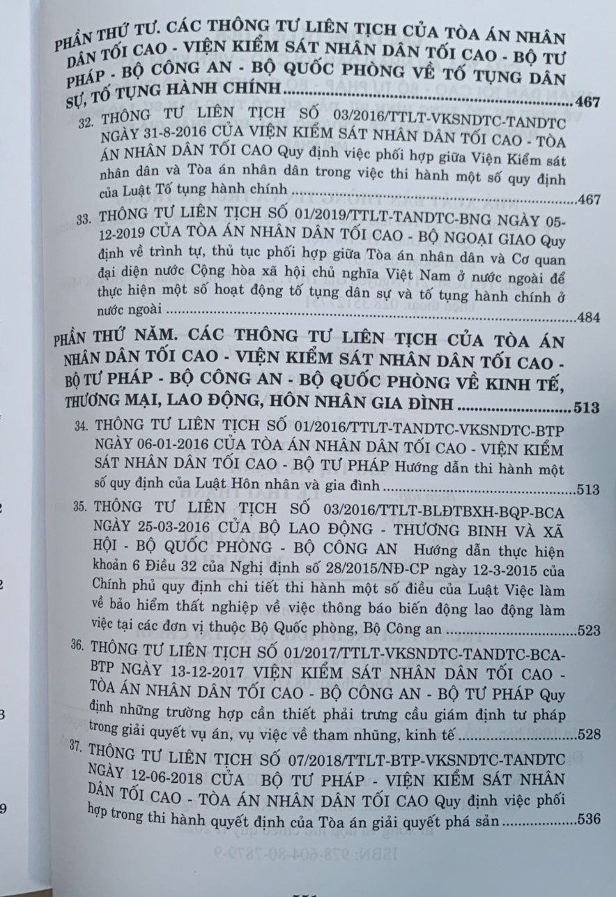 Phần thứ năm: Các Thông tư liên tịch của Tòa án nhân dân tối cao - Viện Kiểm sát nhân dân tối cao - Bộ Tư pháp - Bộ Công an - Bộ Quốc phòng về kinh tế, thương mại, lao động, hôn nhân gia đình