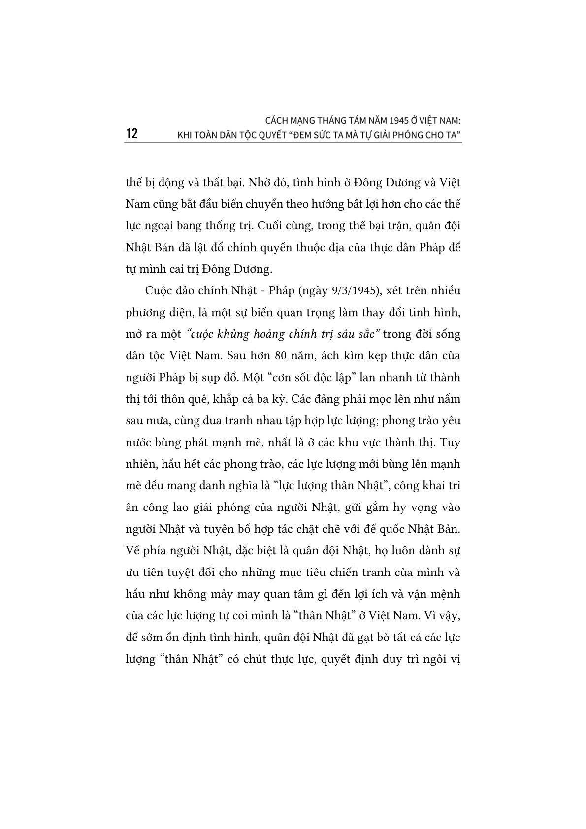 Nhân kỷ niệm 80 năm Cách mạng Tháng Tám thành công và Quốc khánh 2/9 (1945 - 2025), nhằm góp phần làm rõ lịch sử và ý nghĩa to lớn của cuộc Cách mạng Tháng Tám năm 1945 ở Việt Nam, Nhà xuất bản Chính trị quốc gia Sự thật xuất bản cuốn sách Cách mạng Tháng Tám năm 1945 ở Việt Nam: Khi toàn dân tộc quyết “đem sức ta mà tự giải phóng cho ta” do GS.TS. Phạm Hồng Tung biên soạn. Bằng cách tiếp cận nghiên cứu liên ngành, sử dụng các nguồn sử liệu phong phú, cuốn sách tập trung phân tích tình hình Việt Nam dưới ách thống trị của thực dân Pháp và quân đội Nhật Bản; đường lối, chiến lược của Đảng Cộng sản Đông Dương, sự ra đời của Mặt trận Việt Minh nhằm thúc đẩy sự phát triển của phong trào cách mạng, thái độ của các nước Đồng minh đối với Đông Dương trước ngày 9/3/1945; cuộc đảo chính của quân Nhật (9/3/1945) và những biến đổi về chính trị ở Việt Nam cũng như bước phát triển nhảy vọt của phong trào yêu nước và cách mạng ở Việt Nam; quá trình giành chính quyền “đem sức ta mà tự giải phóng cho ta” dưới sự lãnh đạo của Đảng, Mặt trận Việt Minh và Chủ tịch Hồ Chí Minh, thành lập Nhà nước Việt Nam Dân chủ Cộng hòa; đặc điểm, tính chất và ý nghĩa lịch sử của Cách mạng Tháng Tám năm 1945