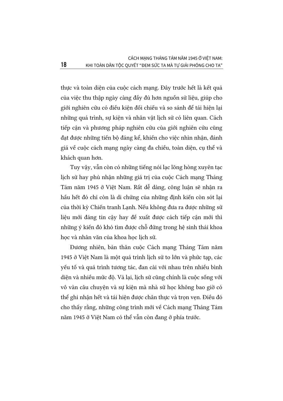 Cuốn sách giúp bạn đọc hiểu sâu sắc hơn về giai đoạn lịch sử hào hùng của dân tộc, đặc biệt là sự lãnh đạo đúng đắn của Đảng ta, đứng đầu là lãnh tụ Nguyễn Ái Quốc - Hồ Chí Minh trong quá trình vận động giải phóng dân tộc, qua đó giáo dục truyền thống cách mạng, ý chí đấu tranh kiên cường, bất khuất của thế hệ cách mạng giải phóng dân tộc, nâng cao ý thức trách nhiệm, khơi dậy khát vọng cống hiến của các thế hệ hôm nay và mai sau nhằm phát triển đất nước phồn vinh, hạnh phúc.