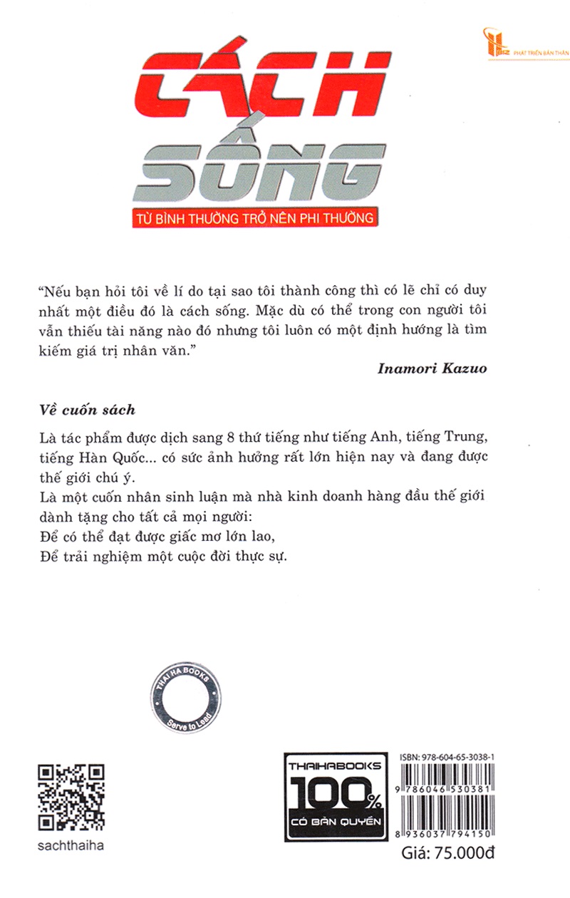 Inamori Kazuo một doanh nhân hết sức thành đạt trong việc sáng lập và điều hành tập đoàn Kyocera lớn mạnh của Nhật Bản. Ông sẽ đem đến cho chúng ta những tư tưởng về Cách Sống. Đây là tập hợp những triết lý mà ông đúc rút ra được từ thực tế sau bao nhiêu năm gian nan xây dựng công ty.